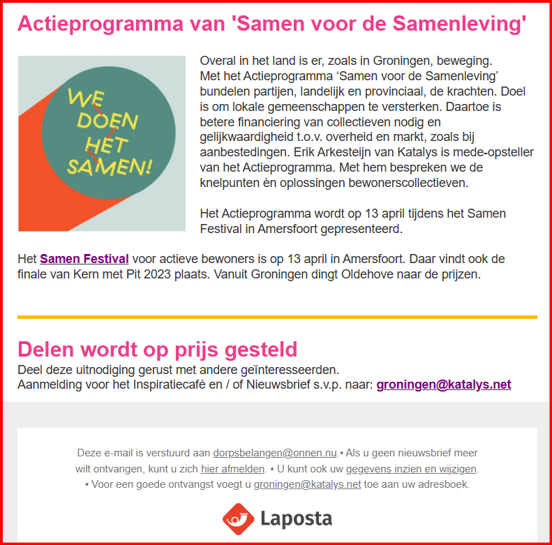 Uitnodiging ALV Dorpsbelangen Onnen